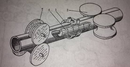 1-高頻感應(yīng)器 2-導(dǎo)向輥 3-擠壓輥 4-鐵磁體